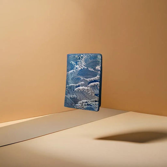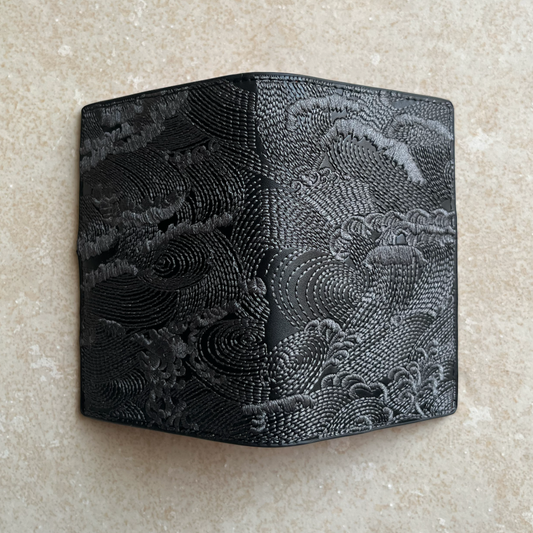 “Great Wave Off” Embroidered Leather Bi-Fold Cardholder