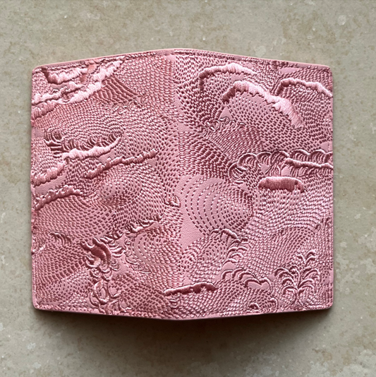 Sakura Pink Embroidered Leather Bi-Fold Cardholder