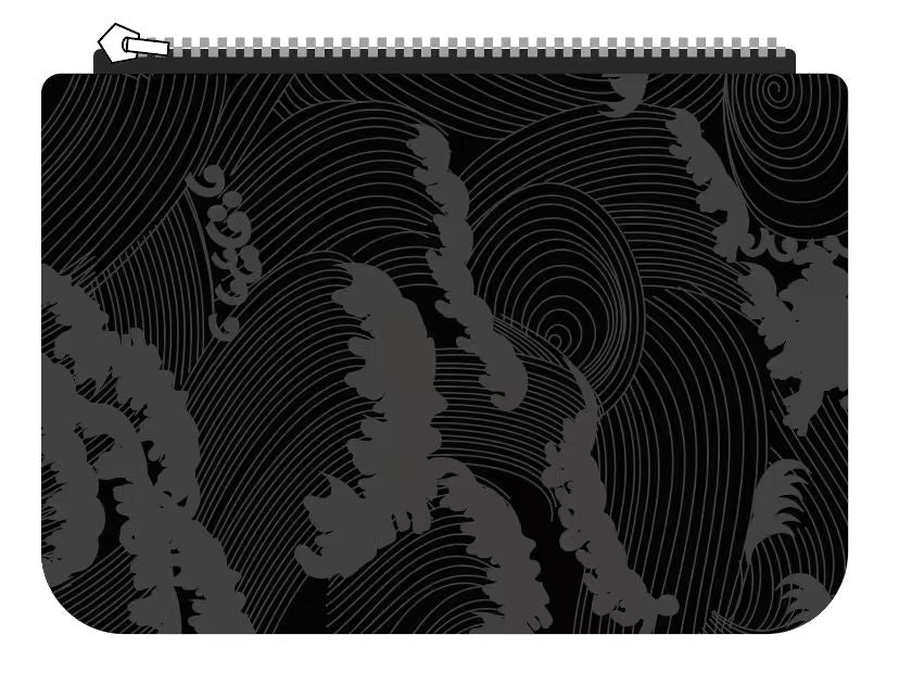 This key pouch stands out with its striking black “Great Wave Off Kanagawa” embroidery on smooth black leather. A polished silver zipper secures the pouch, while an interior split key ring keeps keys neatly in place. Finished with a soft grey lining, it’s simple to use, built to last, and a stylish upgrade for carrying your essentials.