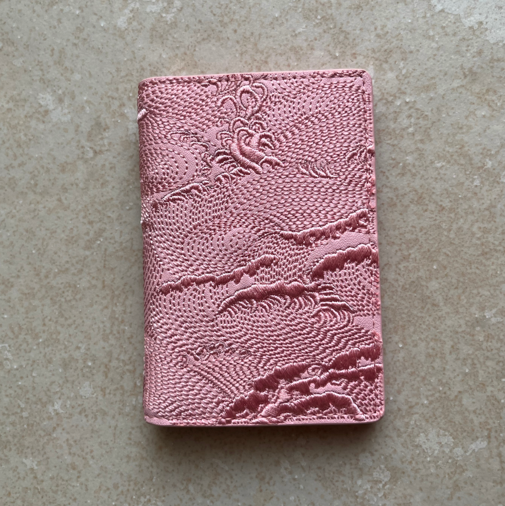 Elevate your essentials with a touch of art and functionality. Inspired by the iconic "Great Wave Off Kanagawa," our cardholder features delicate sakura pink embroidery on smooth, matte leather.